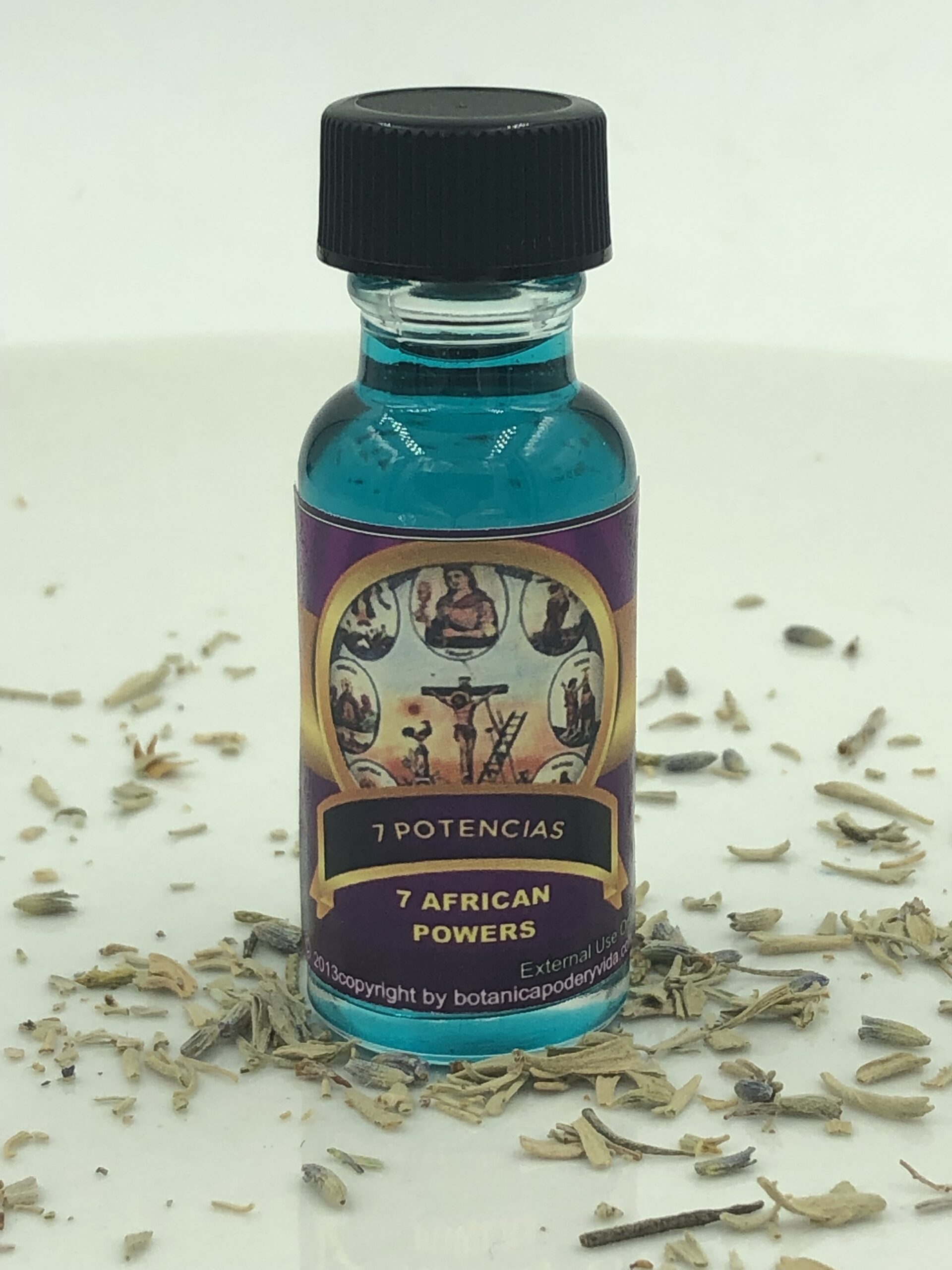 7 African Powers Spiritual Oil is used to call upon the powers of the 7 Orishas. Apply it to the body for protection, peace, strength, harmony, and much more. It can also be used to fix candles and spells. For external use only. The color may be different from the image.