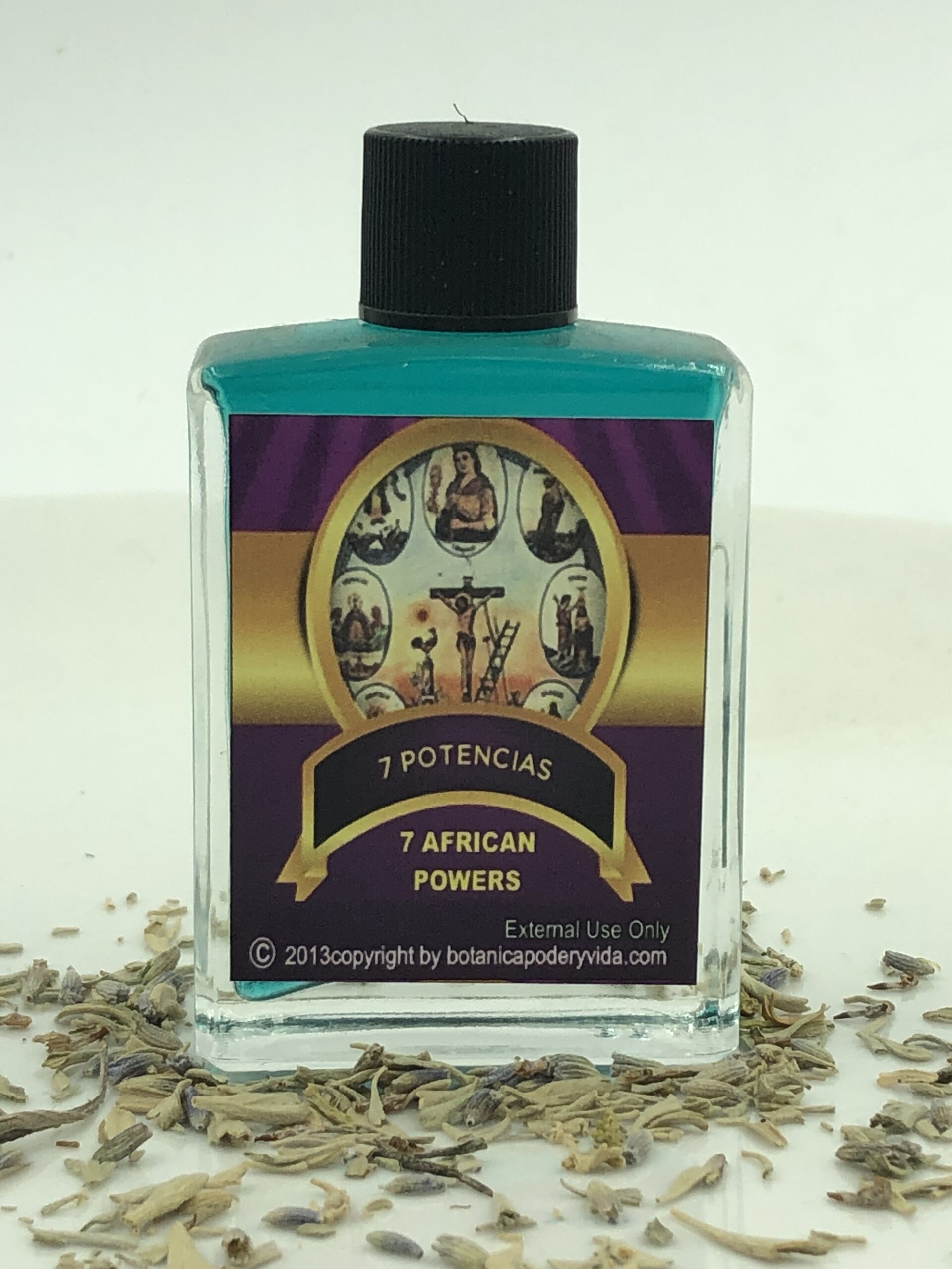 7 African Powers Perfume is used to call upon the powers of the 7 Orishas. It can be used for protection, peace, strength, harmony, and much more. Wear it how you usually wear your perfume and make your request while you apply it. For external use only. The color may be different from the image.