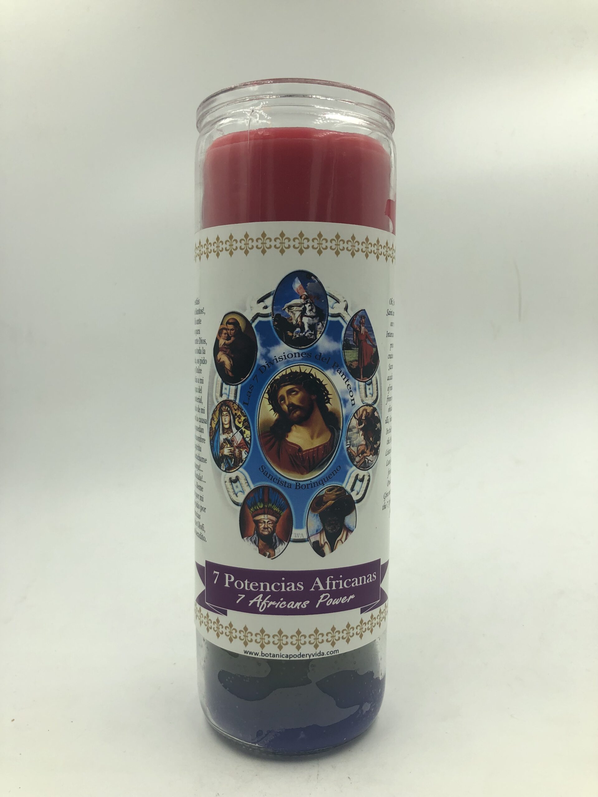 The 7 day Candle 7 African Powers is used to call upon the powers of the 7 Orishas. It can be used for protection, peace, strength, harmony, and much more. Make your request with a lot of faith. Never leave a candle unattended.