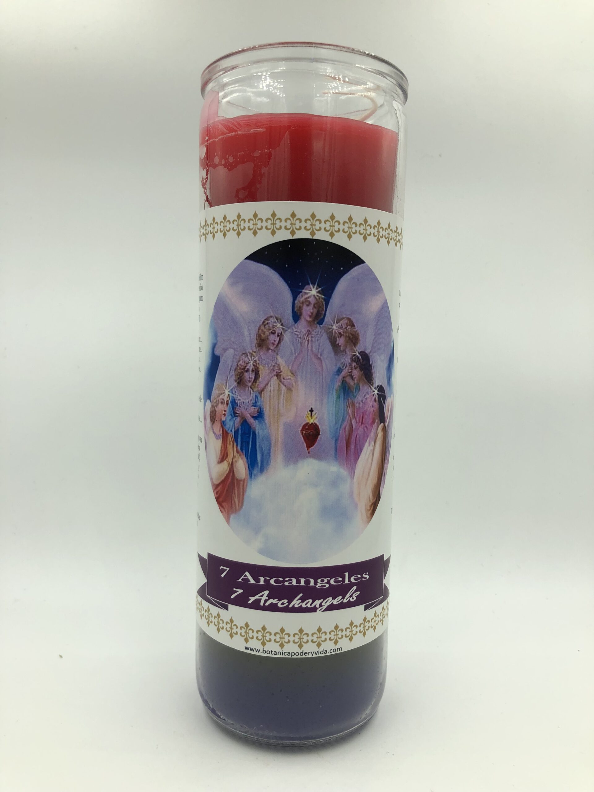 7 day Candle to invoke the help of the 7 Archangels. Make your request with a lot of faith. Never leave a candle unattended.