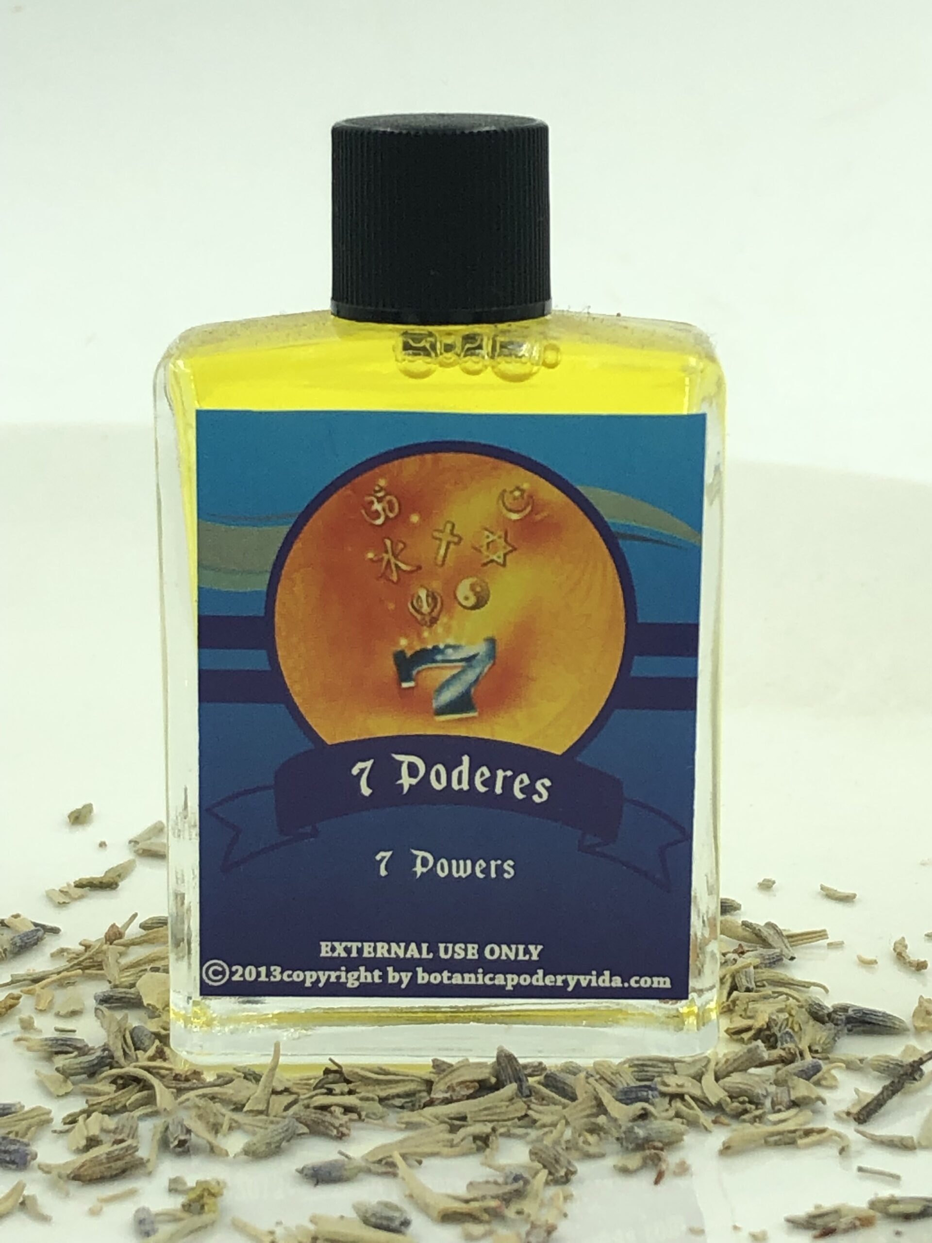 $4.75Add to cart7 Poderes or 7 Powers Oil can be used for protection against everything that wants to harm you. Apply it on the body or use it to fix candles or spells. For external use only. The color may be different from the image.