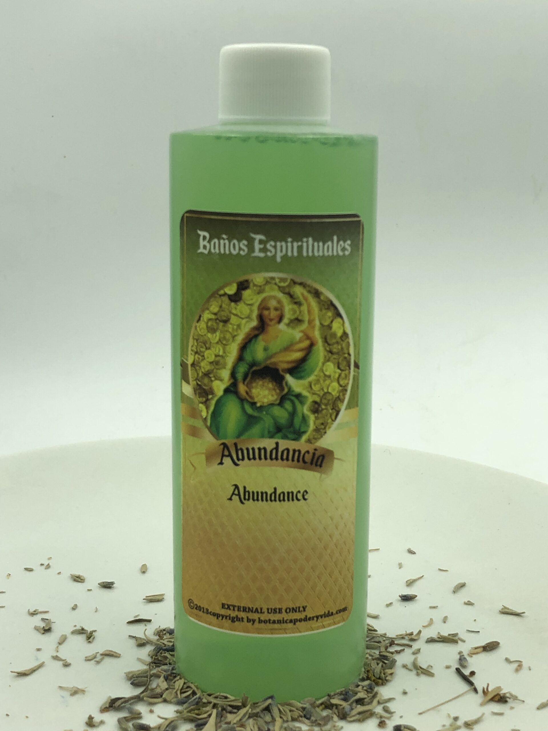 El baño espiritual Abundancia puede ser usado para tener abundancia en dinero, trabajo y suerte. Mezclar el contenido con agua y ducharse. Solo para uso externo. El color puede ser diferente al de la imagen.