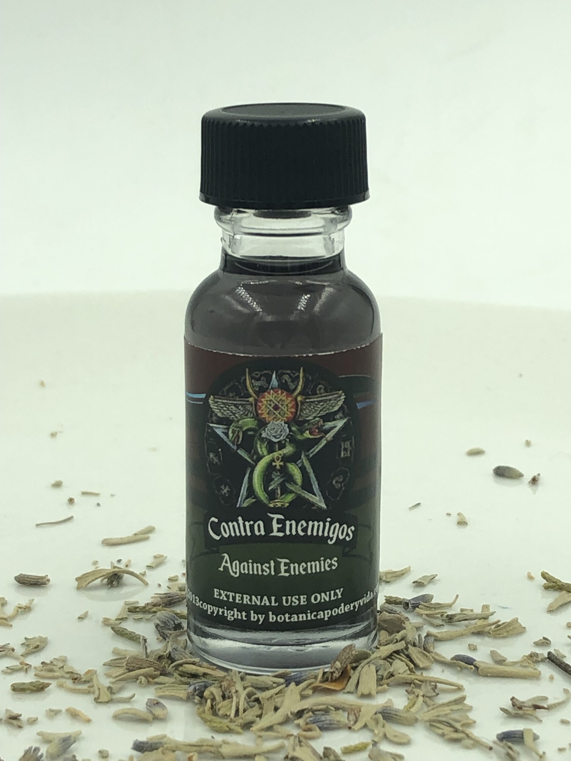Against Enemies Oil can be used to protect yourself from people who wish you harm or want to destroy you. Apply it on the body or use it to fix candles or spells. For external use only. The color may be different from the image.