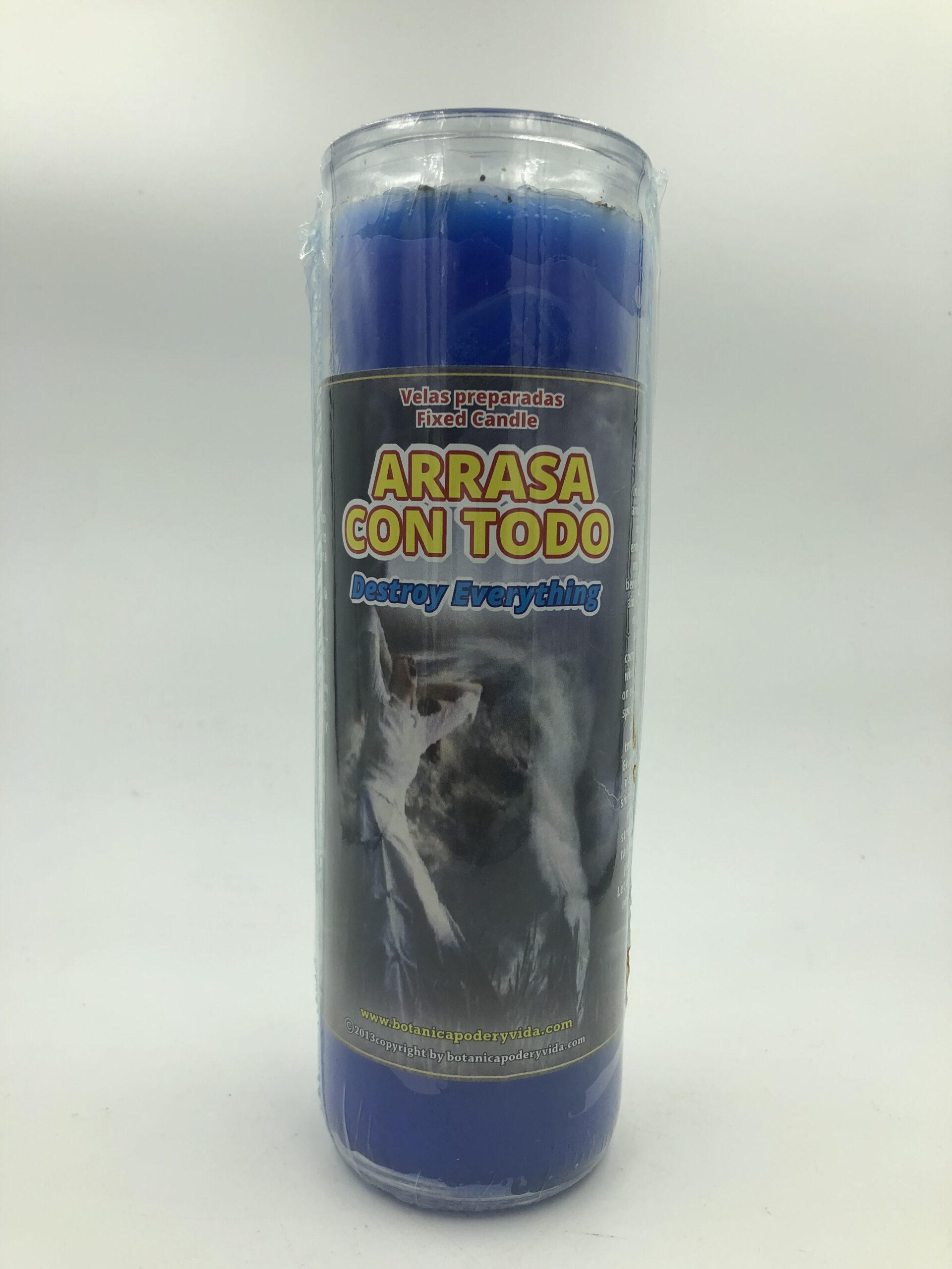 Arrasa con Todo or Take Away Everything Fixed Candle can be used to remove all negativity, keep you safe from your enemies, and take away jinxes and hexes you may have. Make your request with a lot of faith. Never leave a candle unattended.