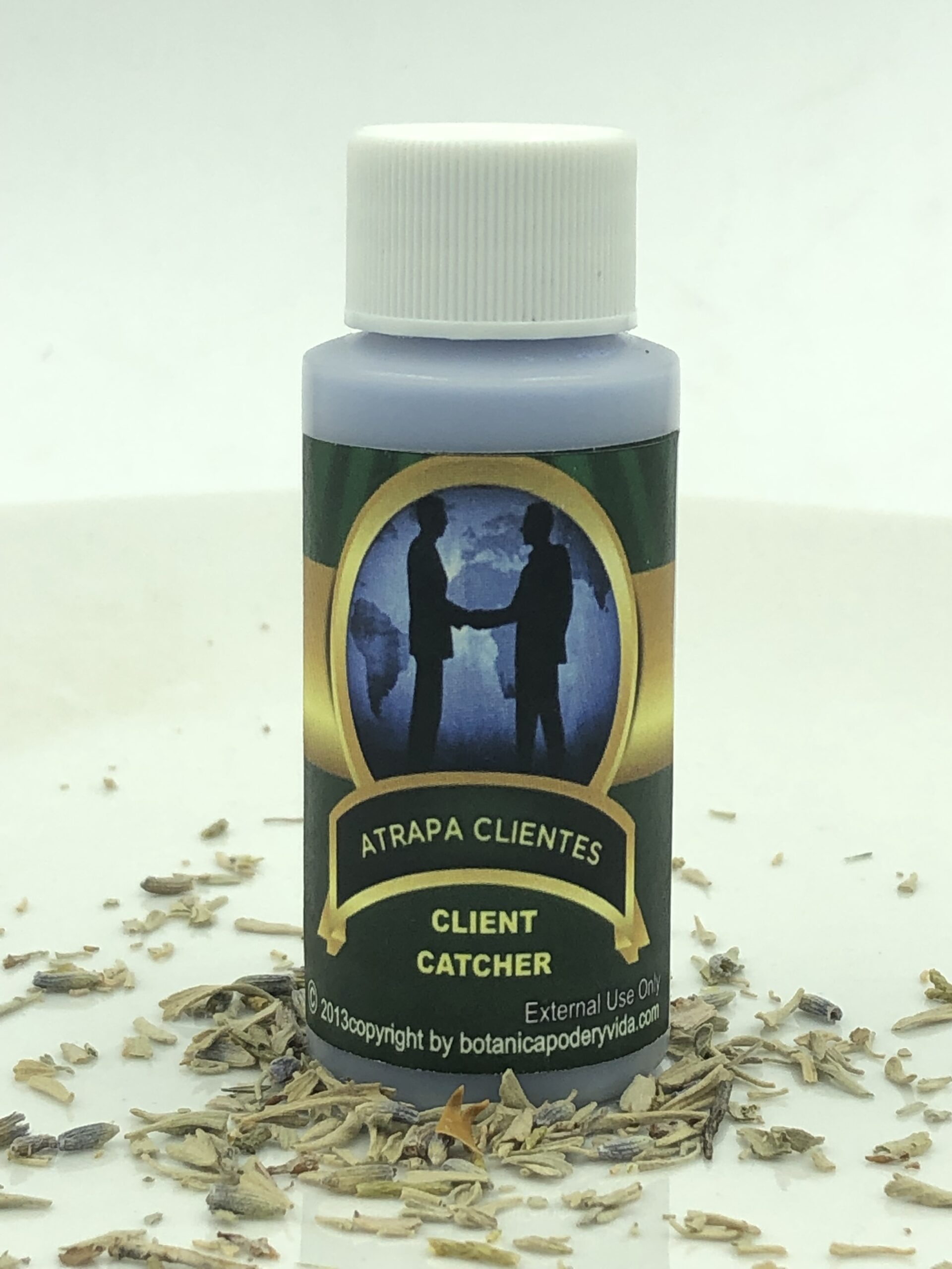 Atrapa Clientes or Client Catcher Powder can be used to help bring success and money and to secure customers to your business. Apply it on yourself or sprinkle it on places or things. It can also be used to annoint candles. For external use only. The color may be different from the image.