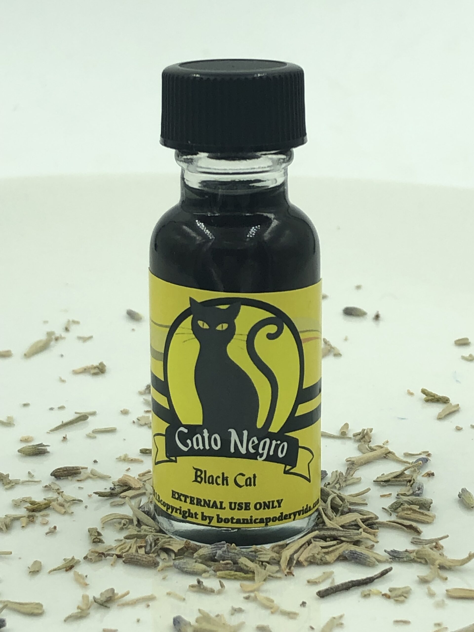 El aceite espiritual Gato Negro puede ser usado para ayudarte atraer suerte y combatir cosas negativas. Usarlo externamente en el cuerpo, también puede ser usado para preparar velas y trabajos espirituales. El color puede ser diferente al de la imagen.