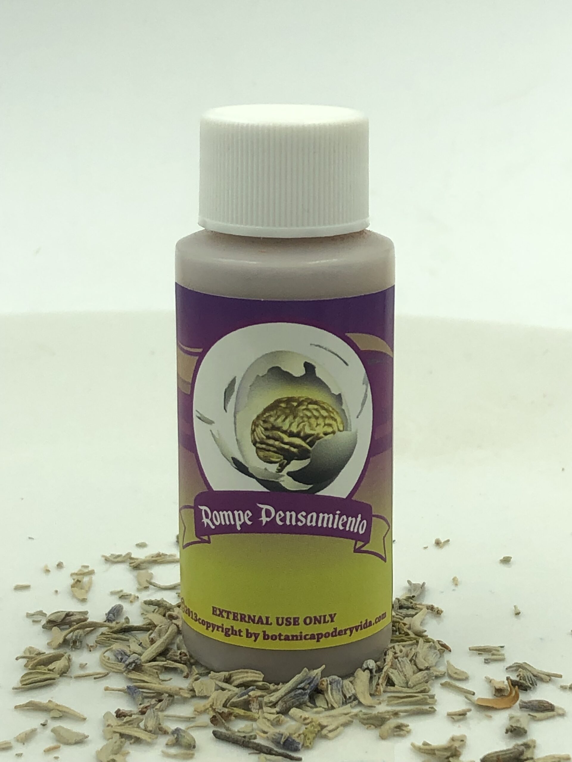 El polvo espiritual Rompe Pensamiento puede ser usado para cambiar la manera de pensar de alguien. Usarlo en el cuerpo, o espolvorear en lugares o cosas. Tambien se puede usar para preparar velas. Solo para uso externo. El color puede ser diferente al de la imagen.