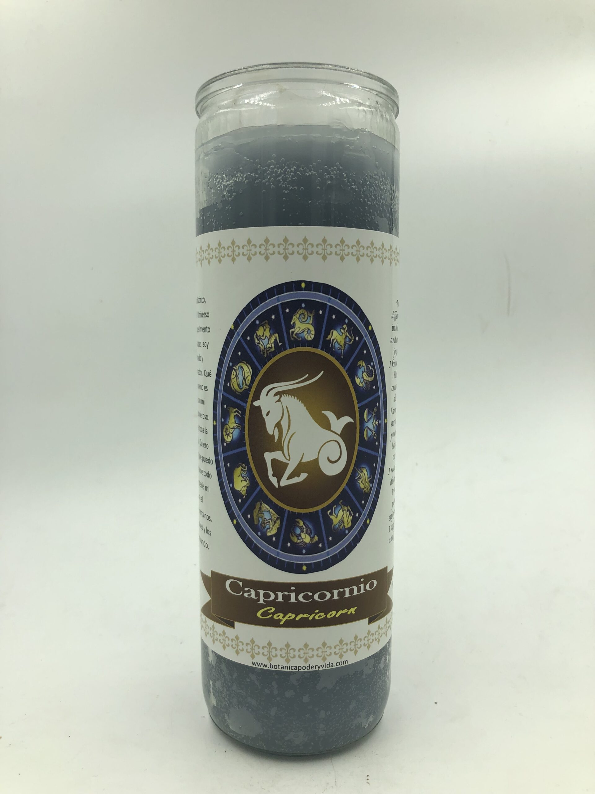 Capricorn Candle to help you with new beginnings full of peace, luck, and harmony. Make your request with a lot of faith. Make your request with a lot of faith. It is recommended to light this candle on the first day of the year or on the week of your birthday. Never leave a candle unattended.