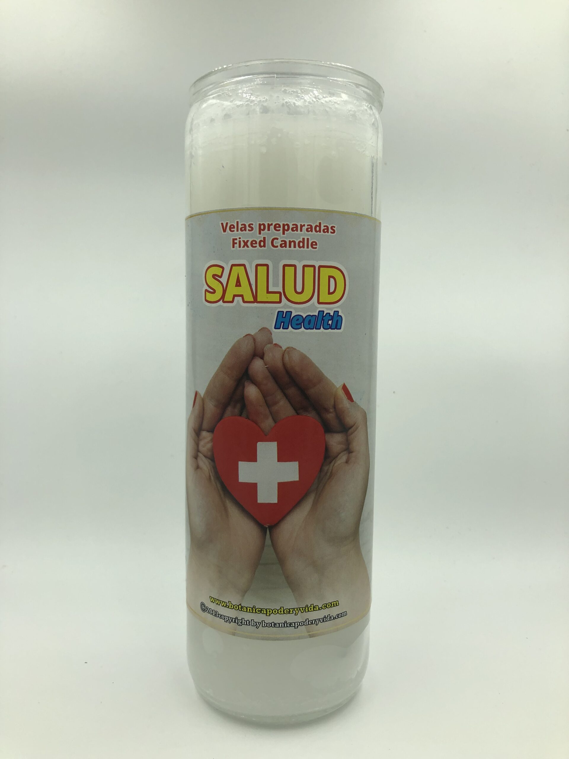La vela de 7 días Salud puede ser usada para pedir buena salud para ti, un amigo, o alguien de tu familia. Haz tu petición con mucha fe. Nunca dejar una vela desatendida.