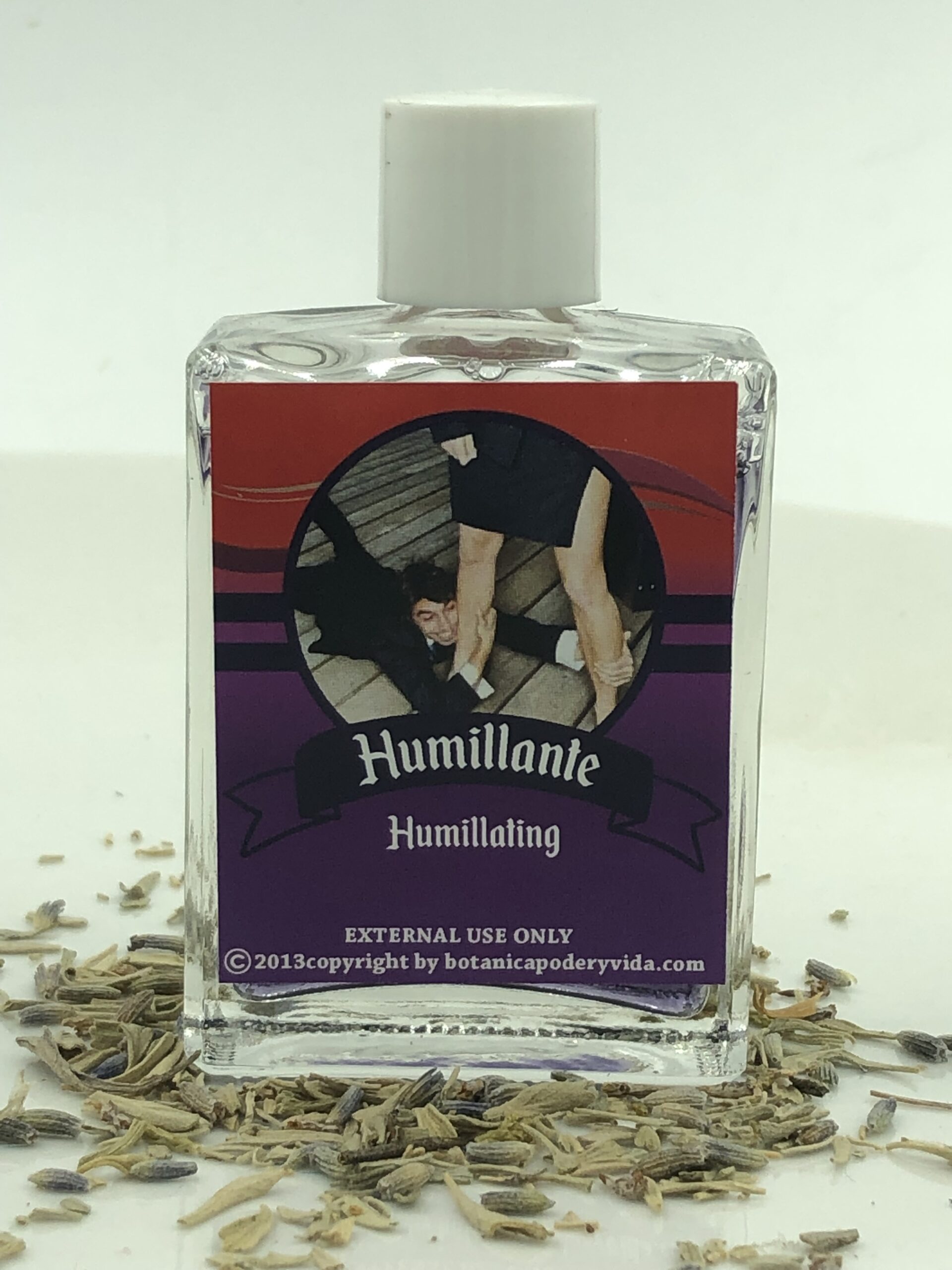 El perfume espiritual Humillante puede ser usado para doblegar, vencer, y amansar a tus enemigos. Usarlo como regularmente usas tu perfume y haz tu petición mientras te lo aplicas. Solo para uso externo. El color puede ser diferente al de la imagen.