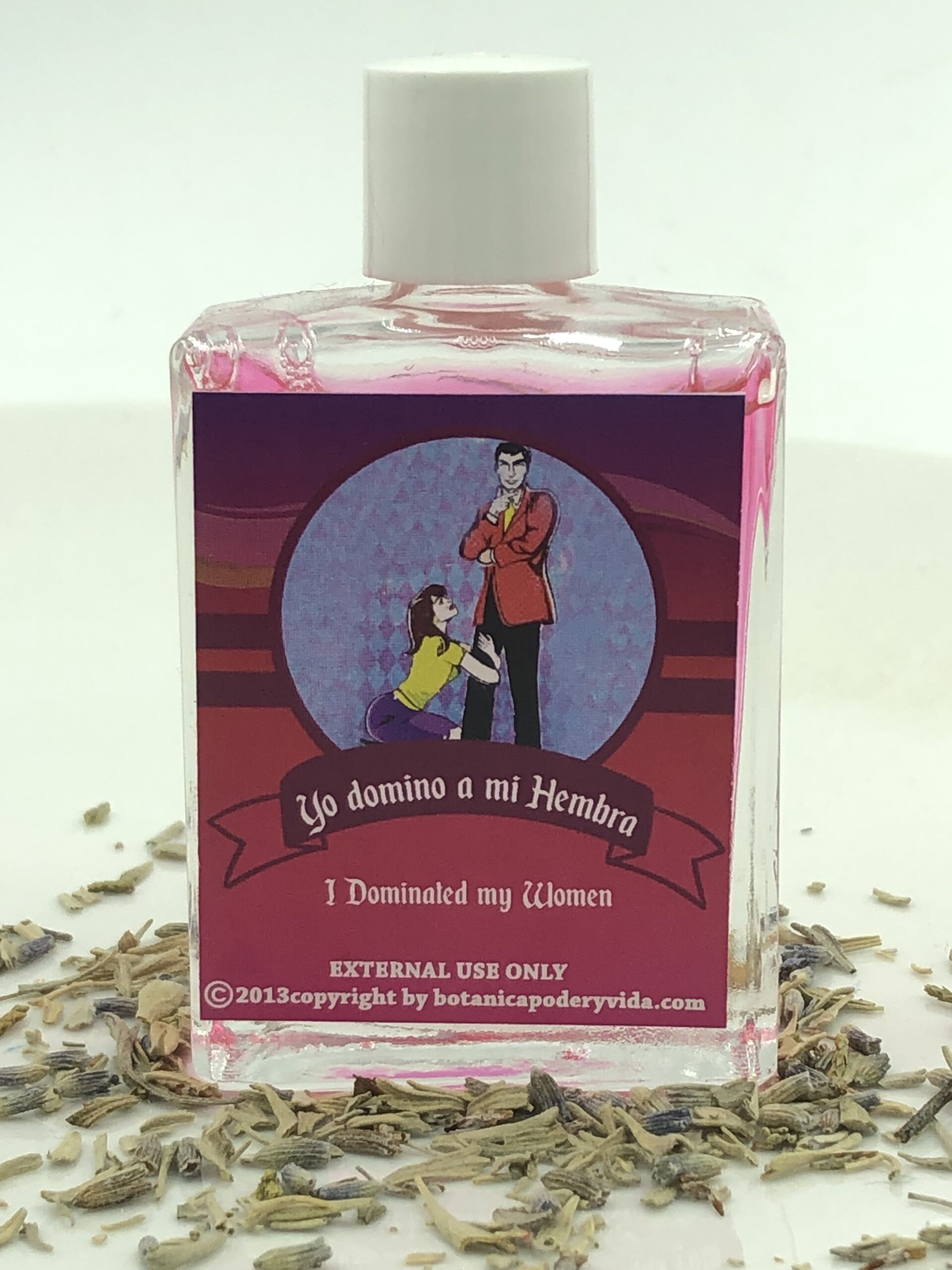 El aceite espiritual Yo Domino a Mi Hembra puede ser usado para que tu mujer sea sumisa para que la puedas dominar más fácilmente. Usarlo externamente en el cuerpo mientras piensas en la persona, también puede ser usado para preparar velas y trabajos espirituales. El color puede ser diferente al de la imagen. -