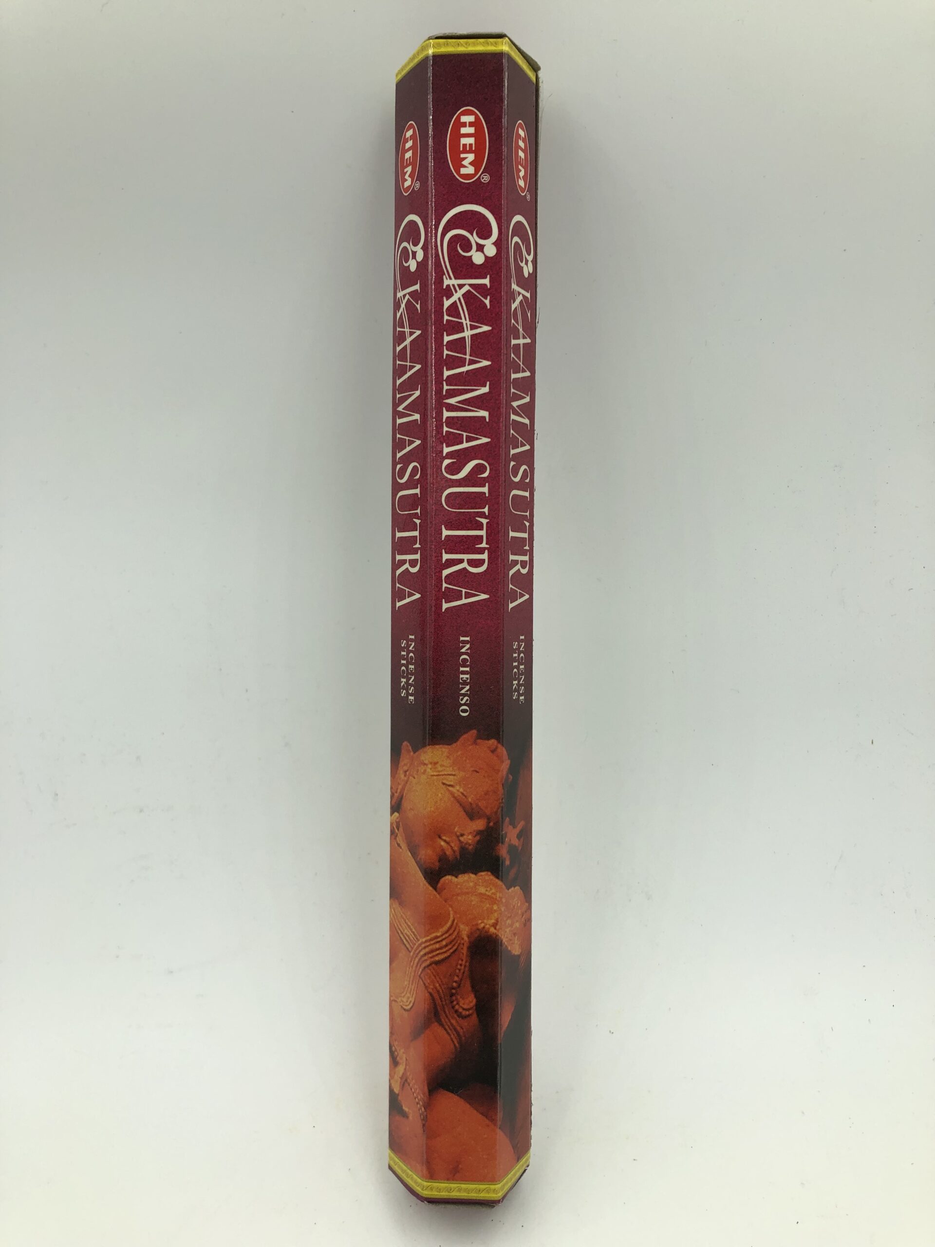 Box of 20 Kamasutra incense sticks. Make sure ashes fall on fireproof surfaces (ashtrays or incense stick holders). Keep away from children.
