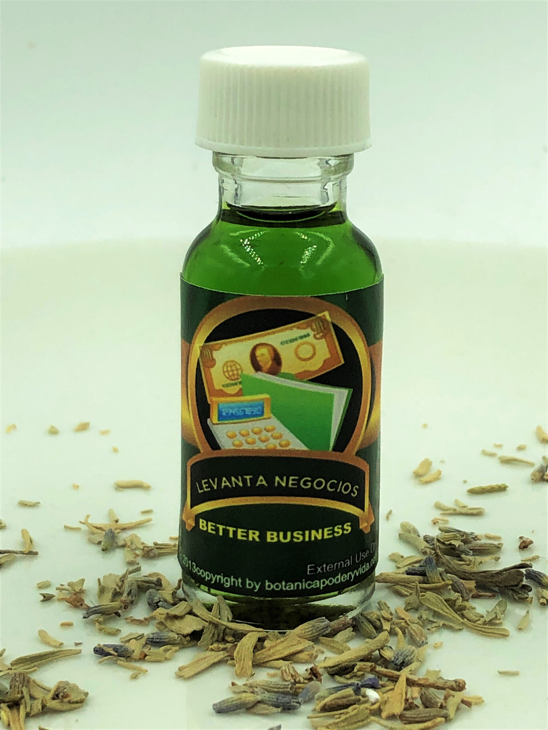 Levanta Negocios or Better Business Oil can be used to lift sales and bring success to your occupation. Apply it on the body or use it to fix candles or spells. For external use only. The color may be different from the image.