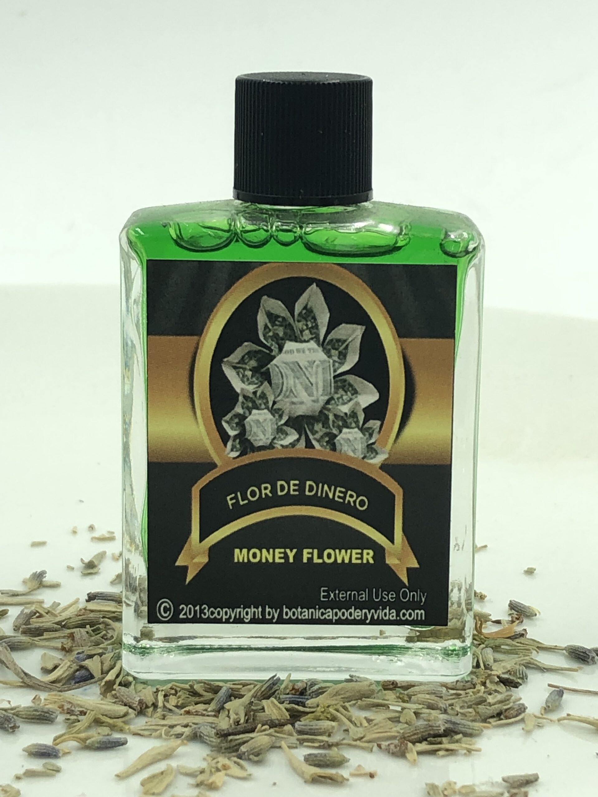 El perfume espiritual Flor de Dinero puede ser usado para ayudar a preservar tu dinero por más tiempo. Usarlo como regularmente usas tu perfume y haz tu petición mientras te lo aplicas. Solo para uso externo. El color puede ser diferente al de la imagen.