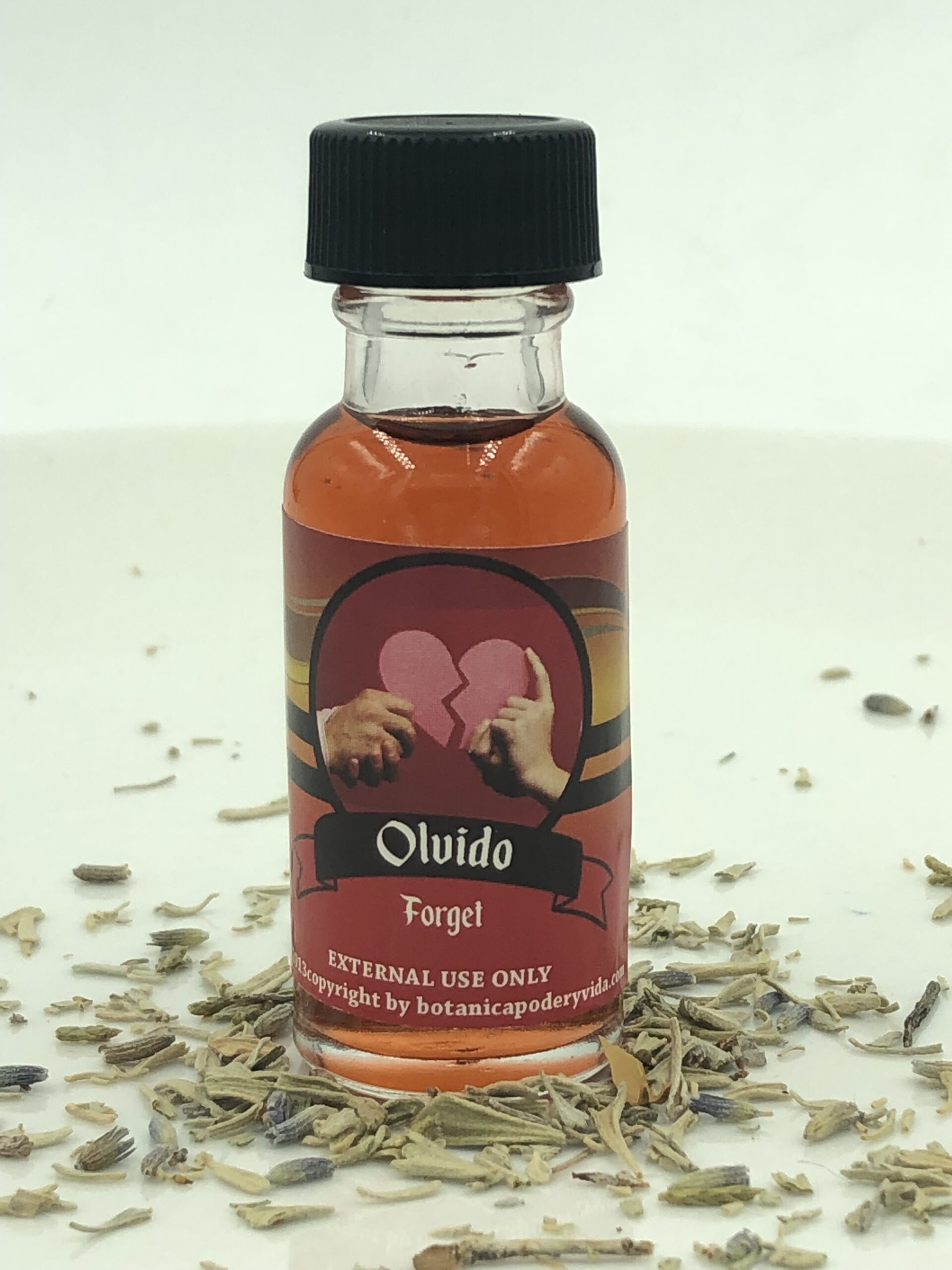 Olvido or Forget Oil can be used to help you forget terrible moments, people, and relationships that have ended. Apply it on the body while thinking of them or use it to fix candles or spells. For external use only. The color may be different from the image.