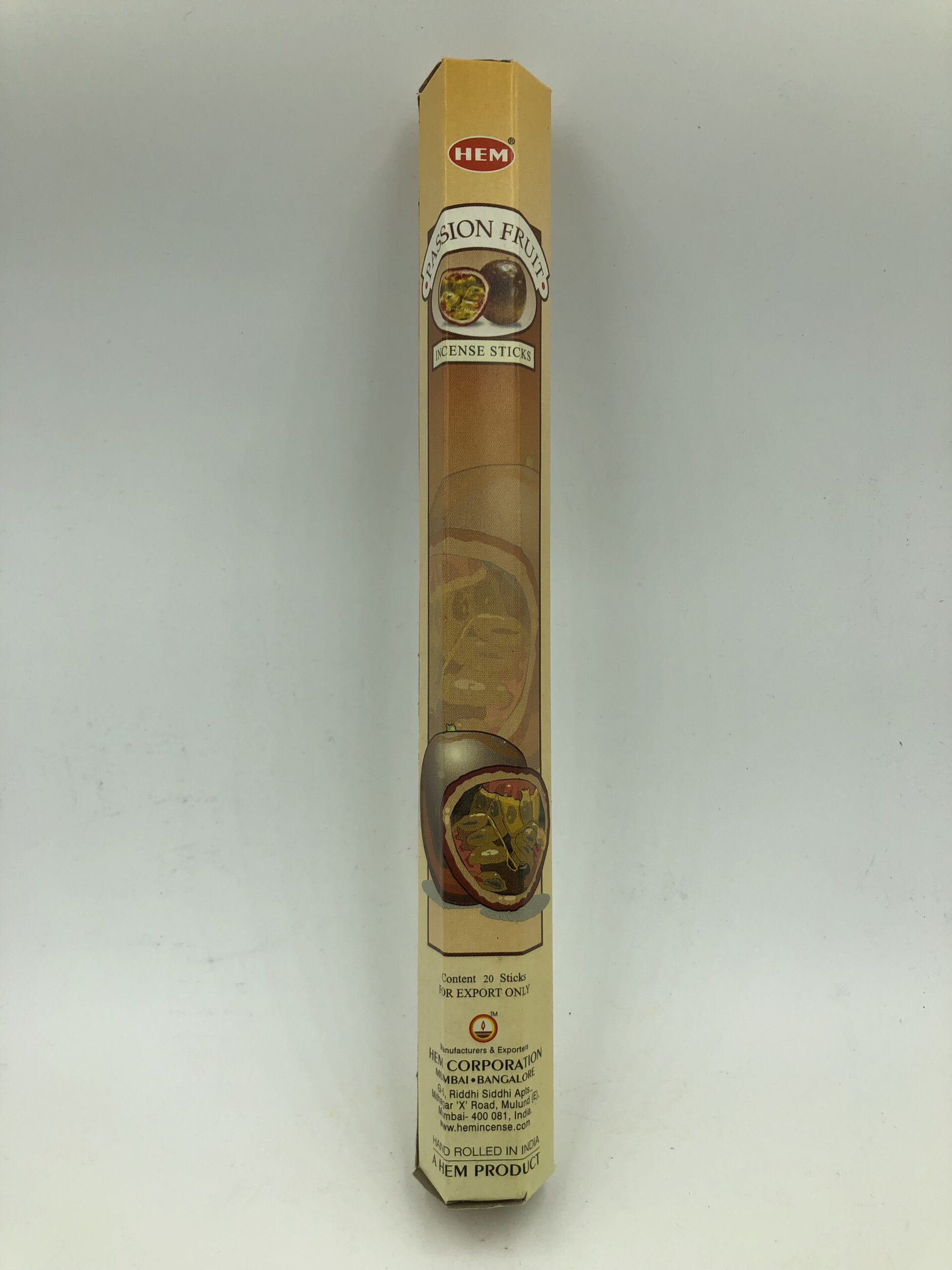 Box of 20 Passion Fruit incense sticks. Make sure ashes fall on fireproof surfaces (ashtrays or incense stick holders). Keep away from children.