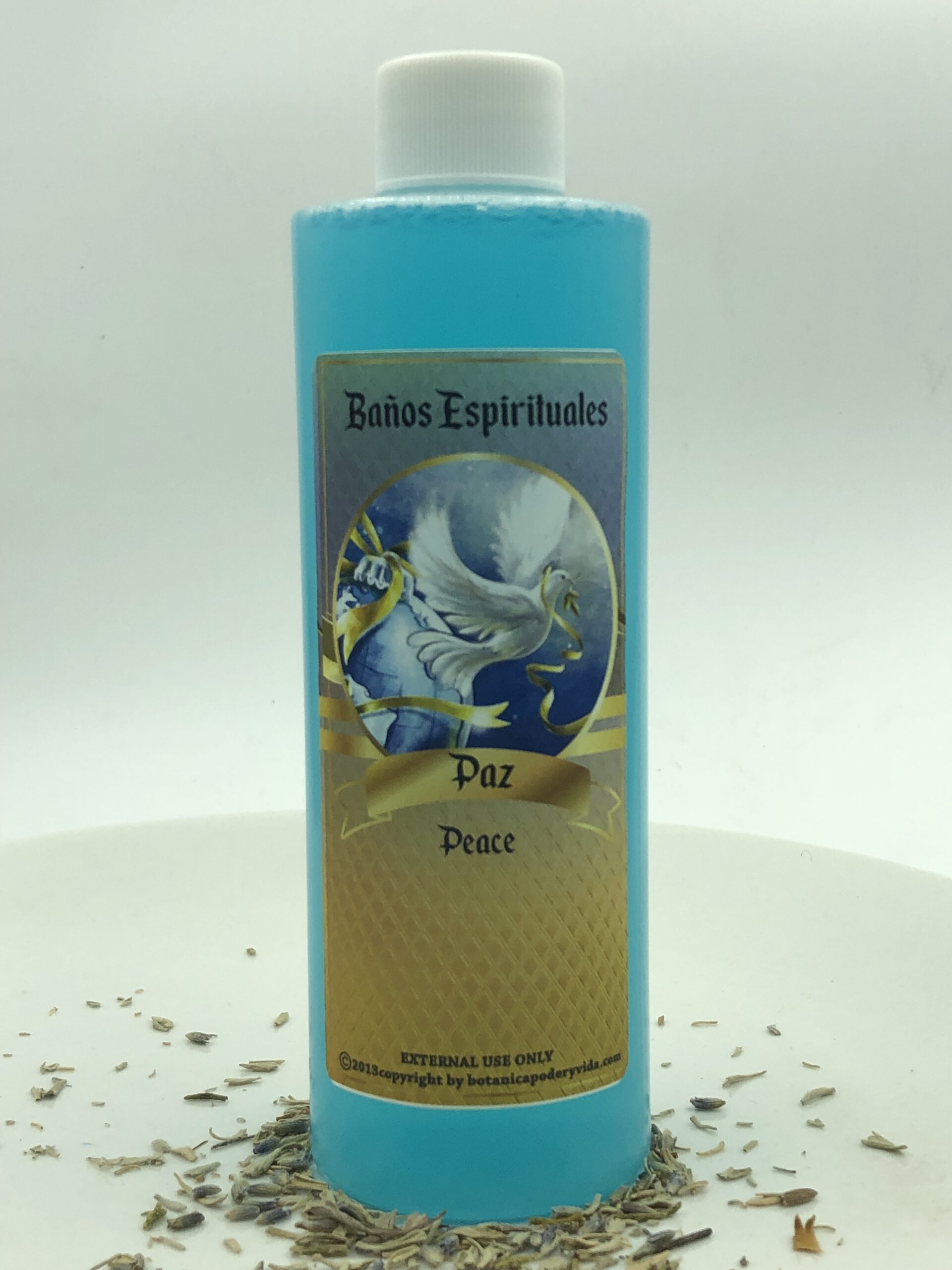 El baño espiritual Paz puede ser usado para terminar con los conflictos familiares y traer paz y tranquilidad al hogar. Mezclar el contenido con agua y ducharse. Solo para uso externo. El color puede ser diferente al de la imagen. Viene en dos tamaños.
