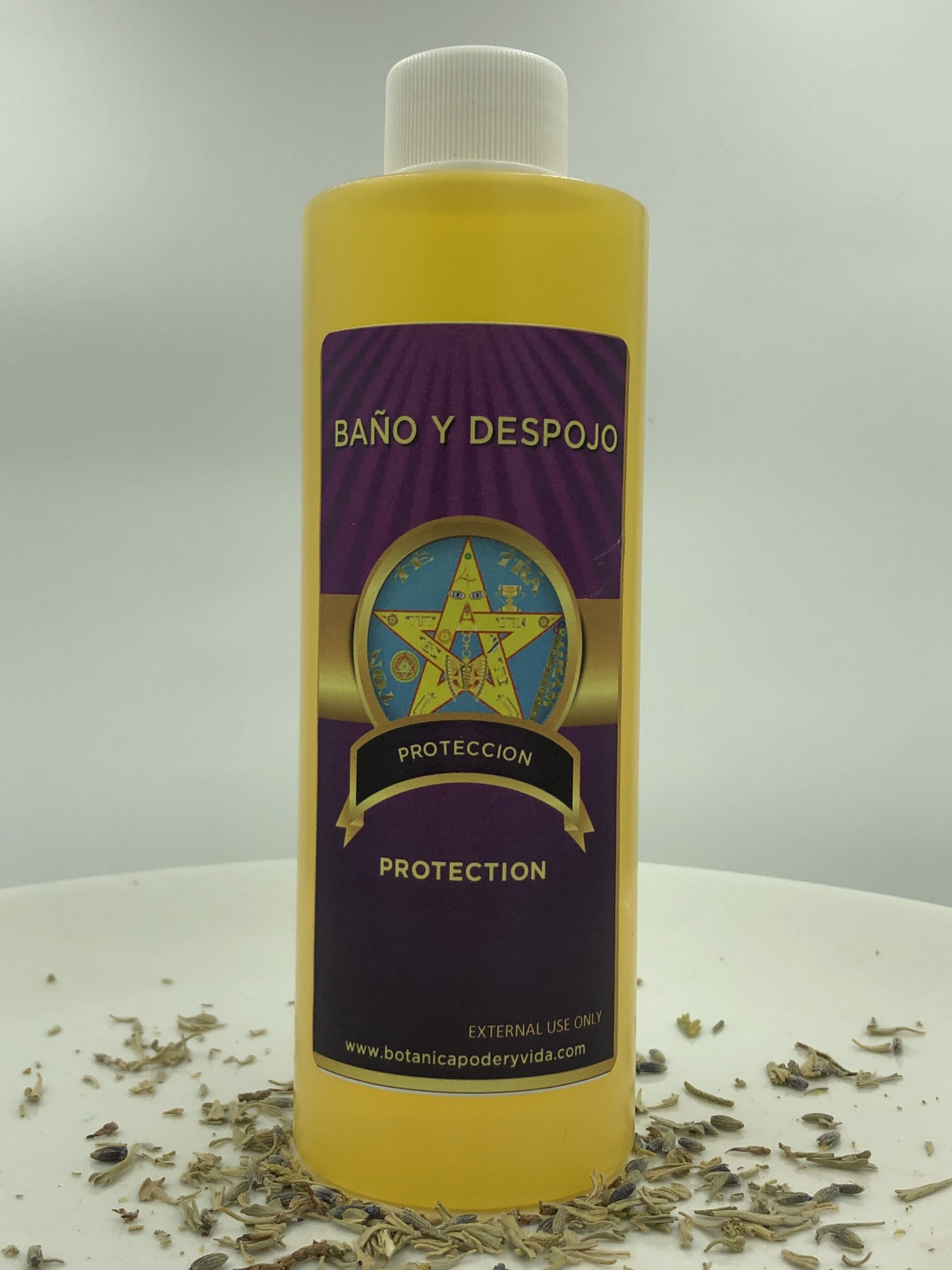El baño espiritual Protección puede ser usado para brindarte tranquilidad y protección de personas mal intencionadas y de todo lo que te pueda causar un daño. Mezclar el contenido con agua y ducharse. Solo para uso externo. El color puede ser diferente al de la imagen.
