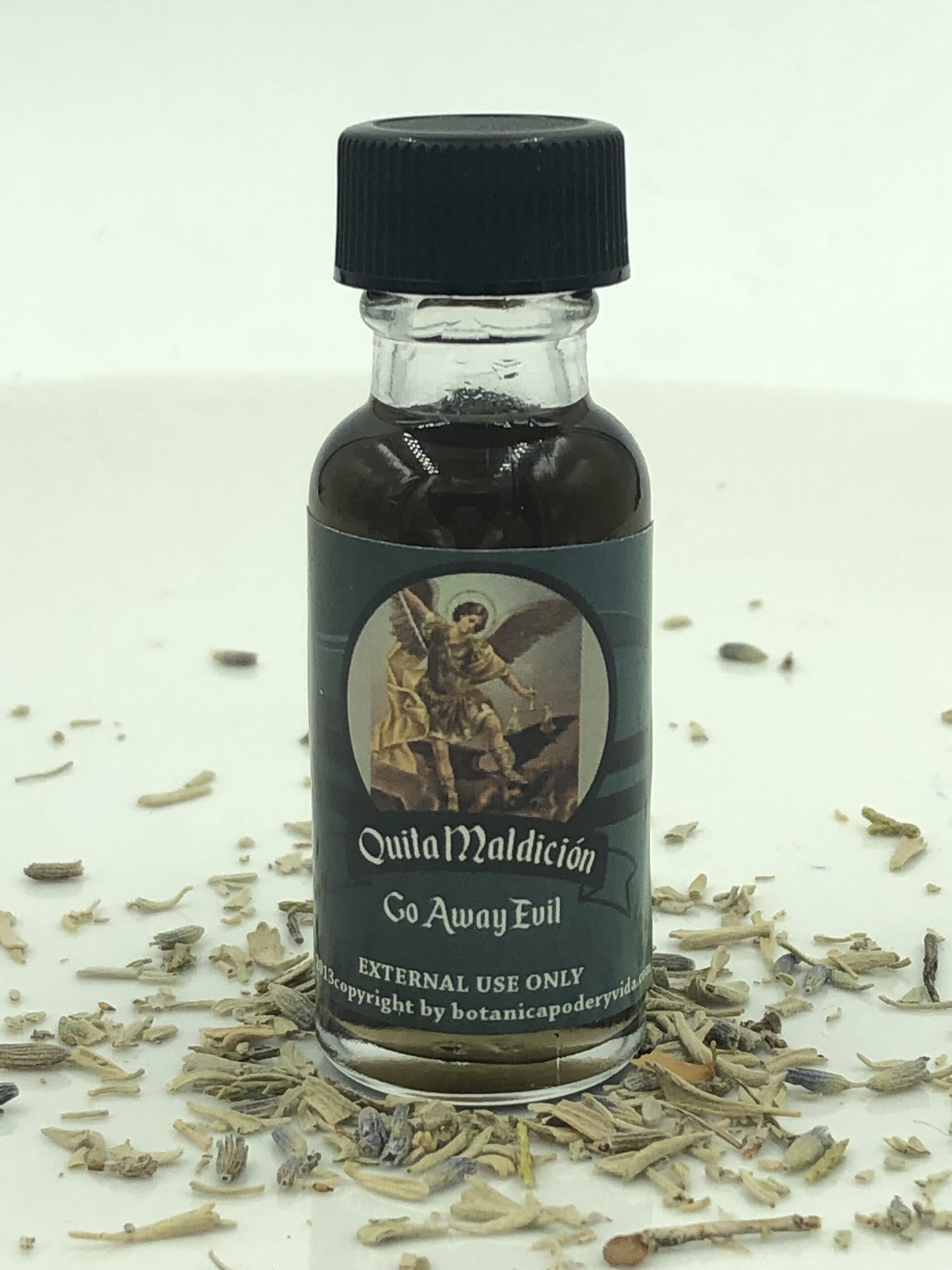Quita Maldición or Take Away Evil Oil can be used to break or weaken any spells or witchcraft that may be on you. Apply it on the body or use it to fix candles or spells. The color may be different from the image.