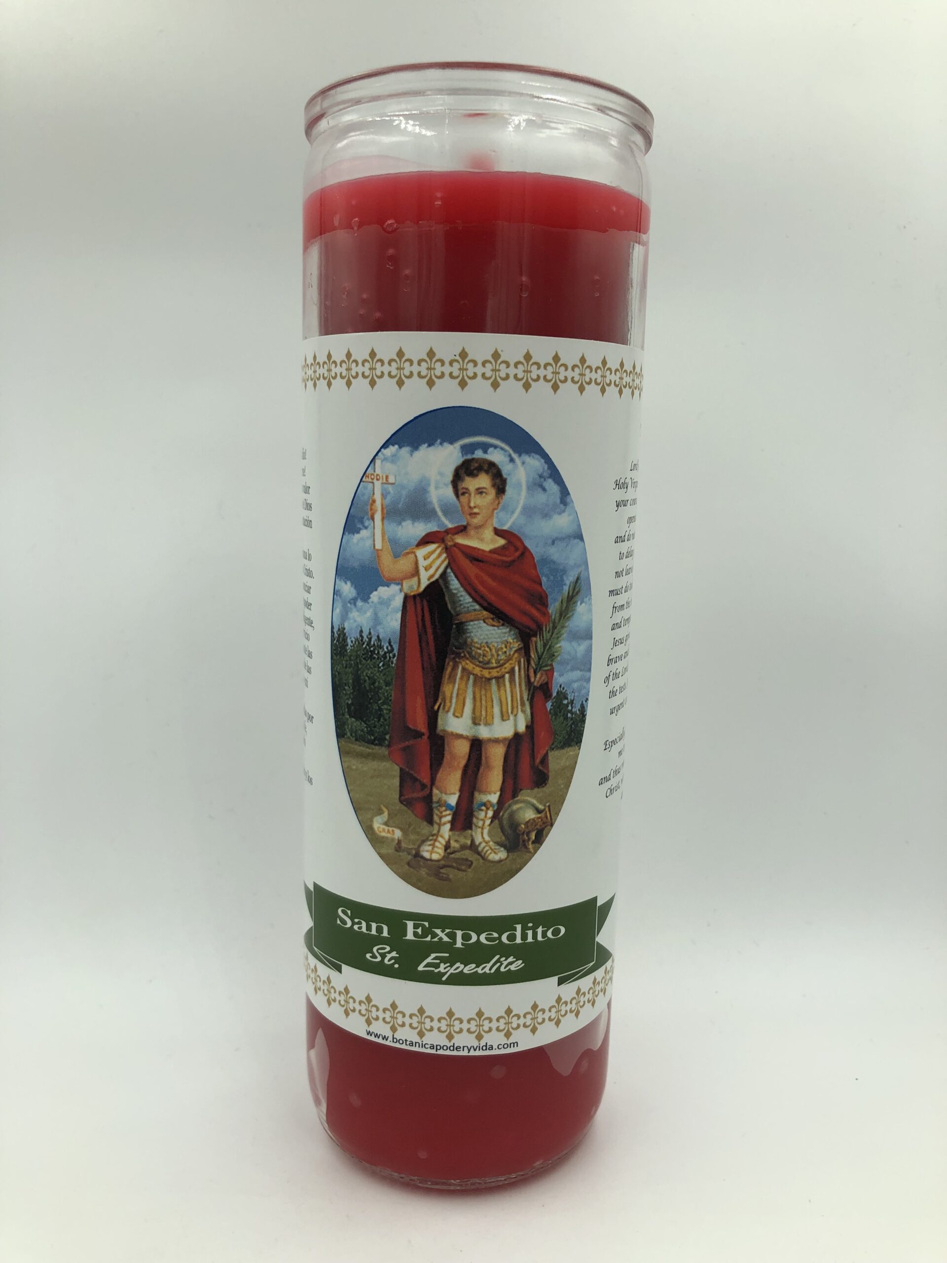 7 day candle to invoke the help of Saint Expedite. Make your request with a lot of faith. Never leave a candle unattended.