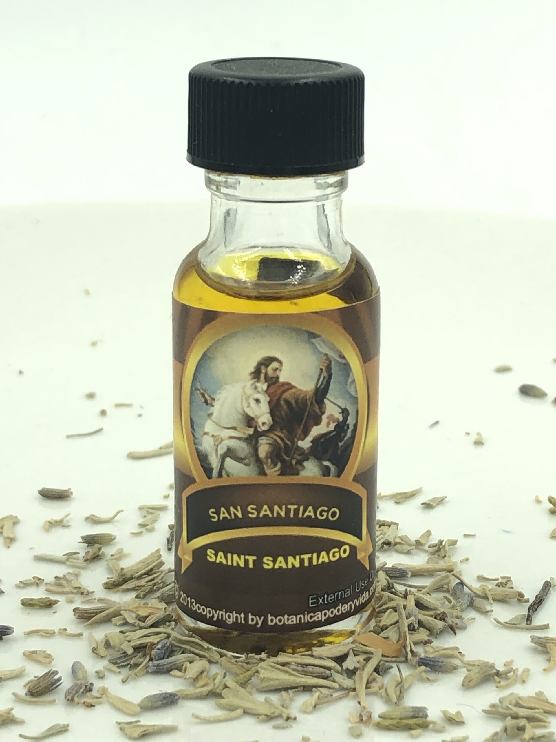 Saint Santiago Oil can be used to invoke his power to bring you tranquility and peace. He can also help protect you against evil. Apply it on the body or use it to fix candles or spells. For external use only. The color may be different from the image.