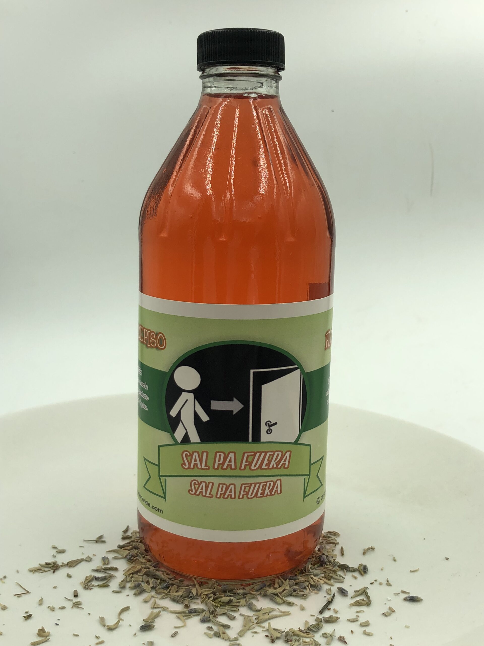 El lavado de piso Sal Pa Fuera puede ser usado para sacar a una persona o cosa indeseada de tu vida. Mezclar una parte con agua tibia y trapear el piso de adentro hacia afuera. El color puede ser diferente al de la imagen.