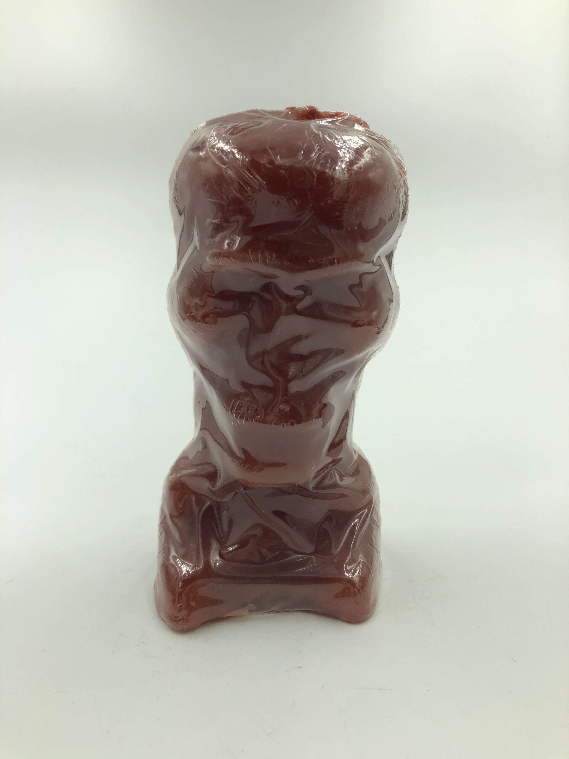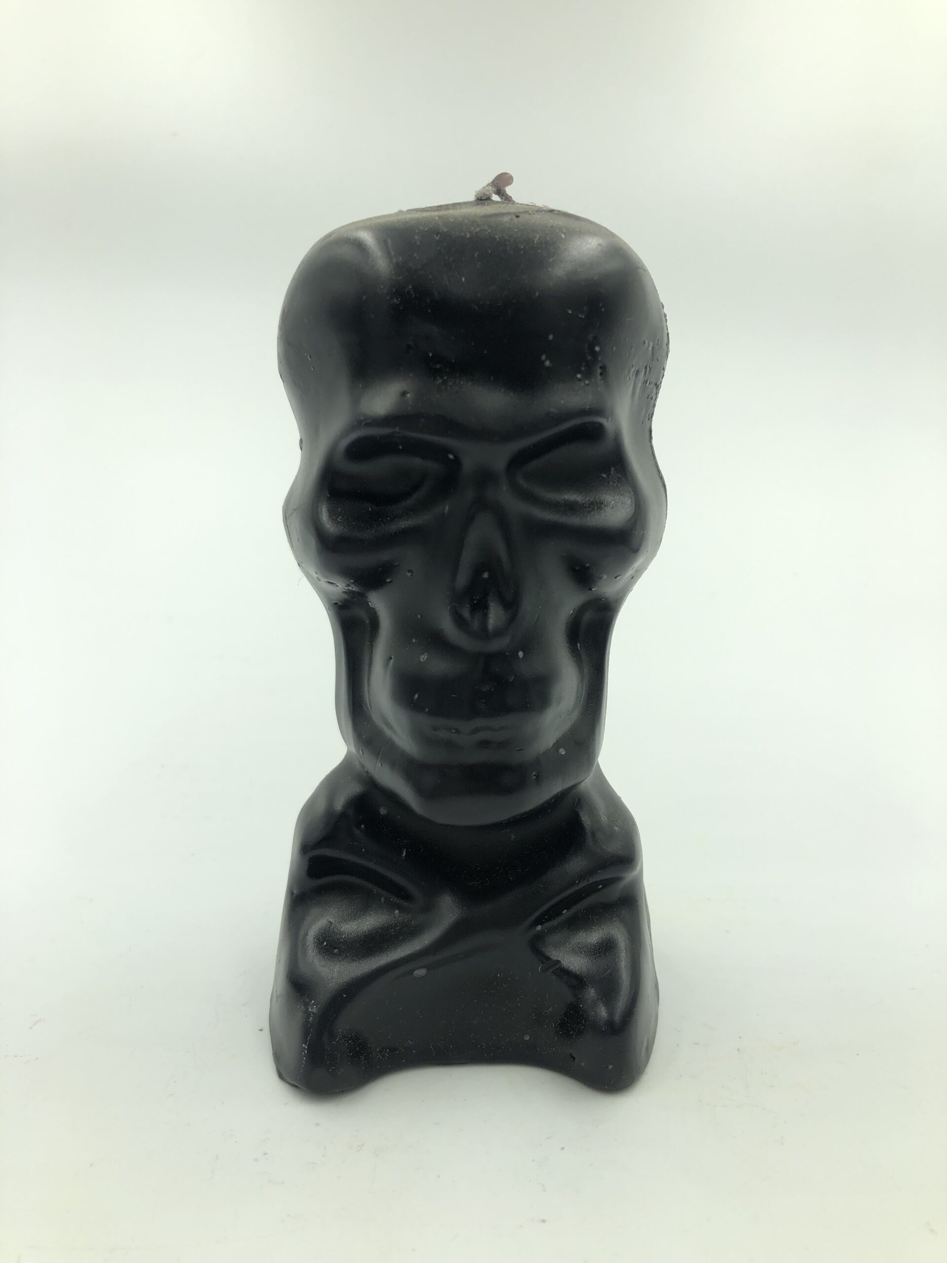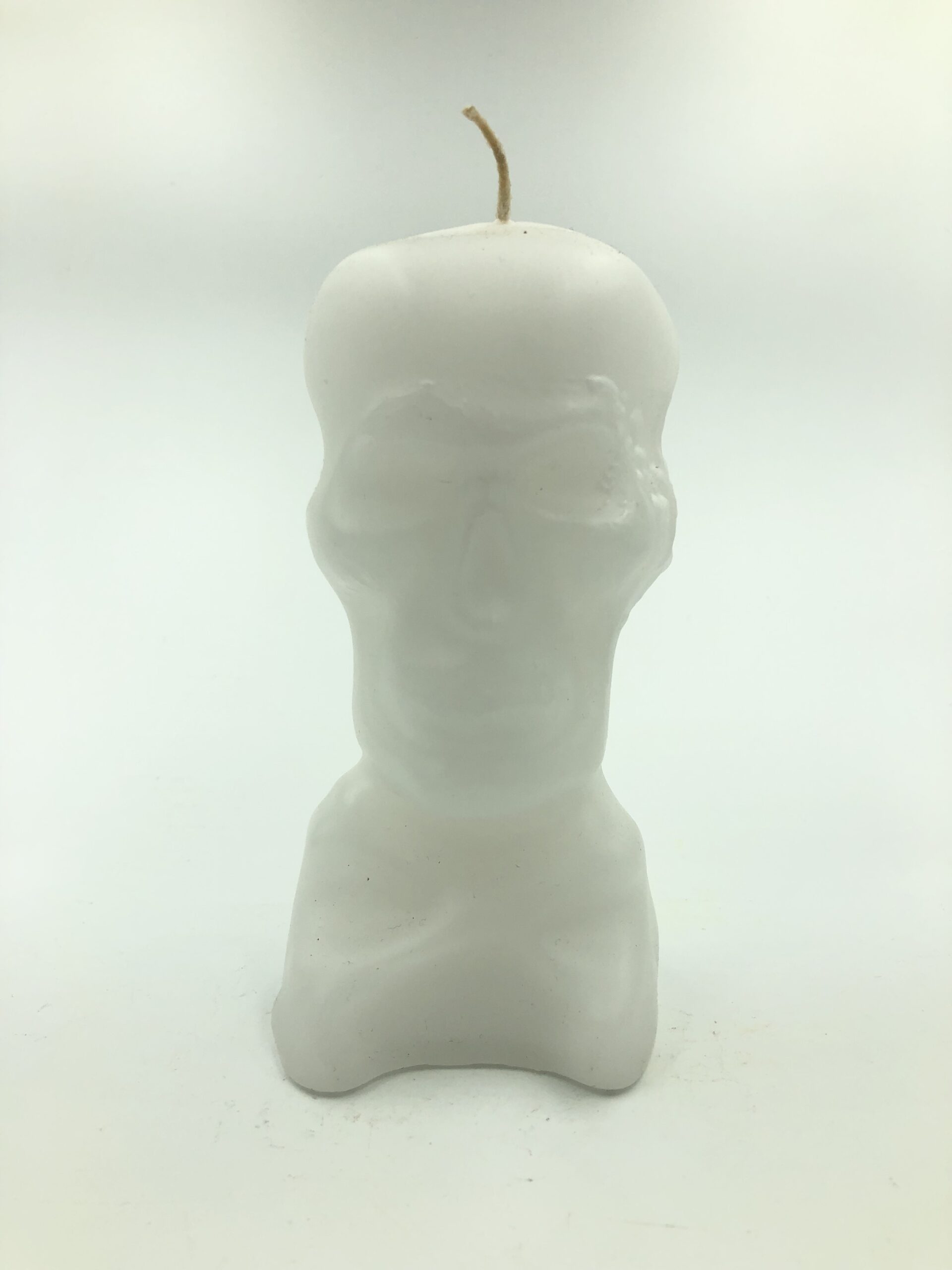 Vela de figura de calavera. Nunca dejar una vela desatendida.