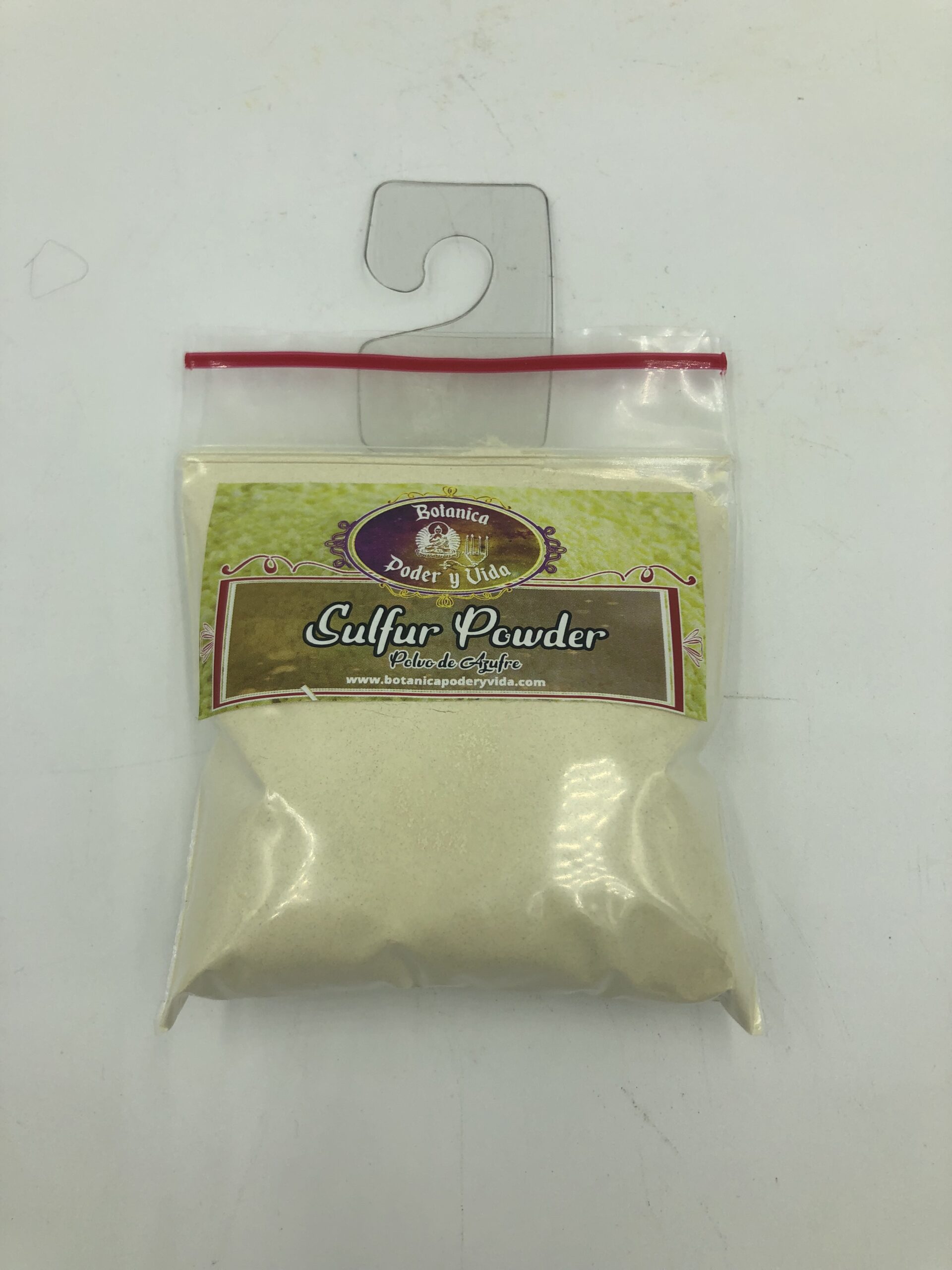 Una bolsita de azufre en polvo.