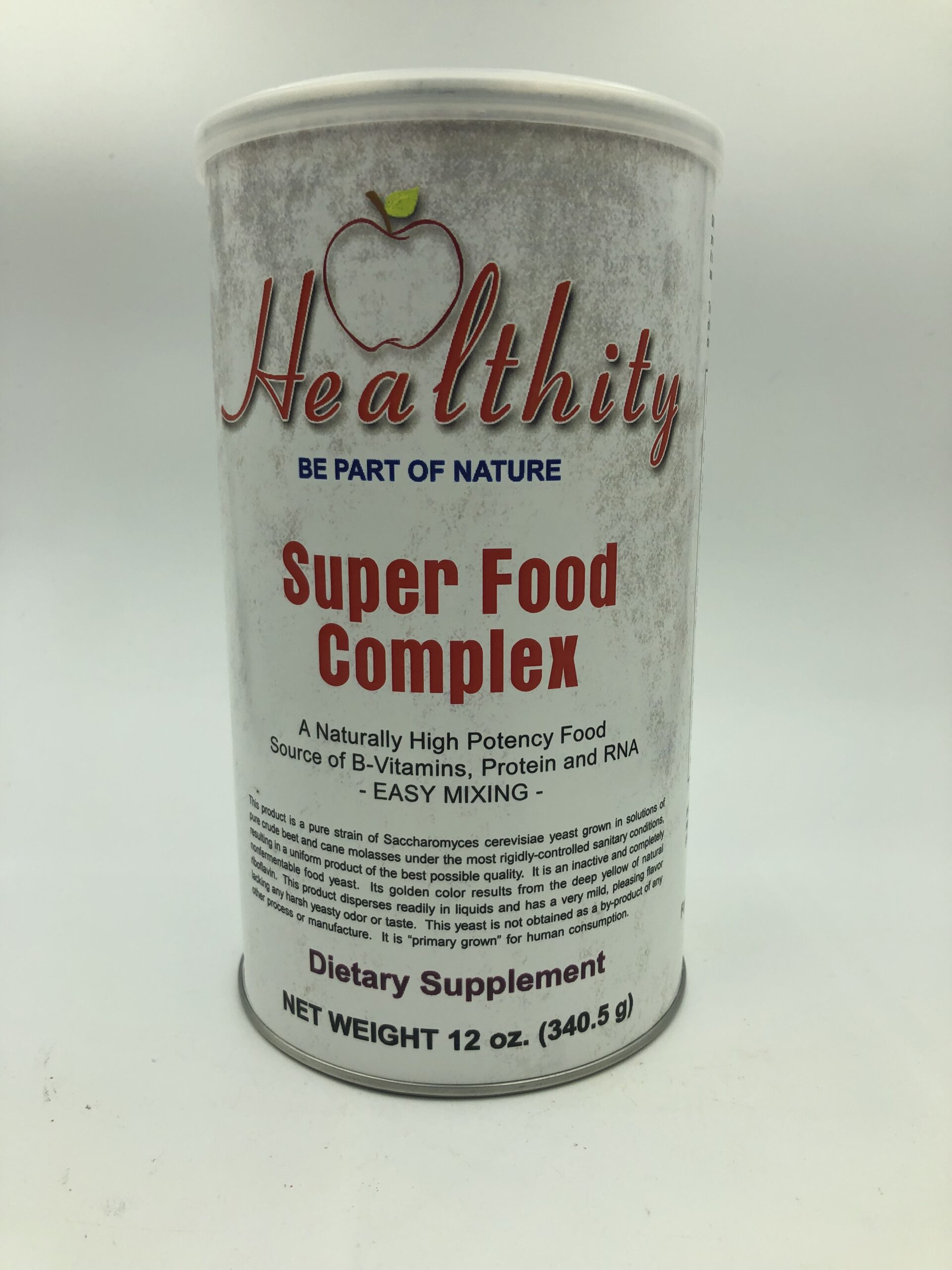 Super Food Complex, este producto es una cepa pura de levadura de Saccharomyces cerevisiae cultivada en soluciones de melaza de caña y de remolacha pura bajo las condiciones sanitarias más rígidamente controladas, resultando en un producto uniforme de la mejor calidad posible. Es una levadura de alimentos inactiva y completamente no fermentable. Su color dorado resulta del amarillo profundo de la riboflavina natural. Este producto se dispersa fácilmente en líquidos y tiene un sabor muy suave y agradable que carece de olor o sabor áspero. Esta levadura no se obtiene como un subproducto de cualquier otro proceso o fabricación. Es “primario cultivado” para el consumo humano.