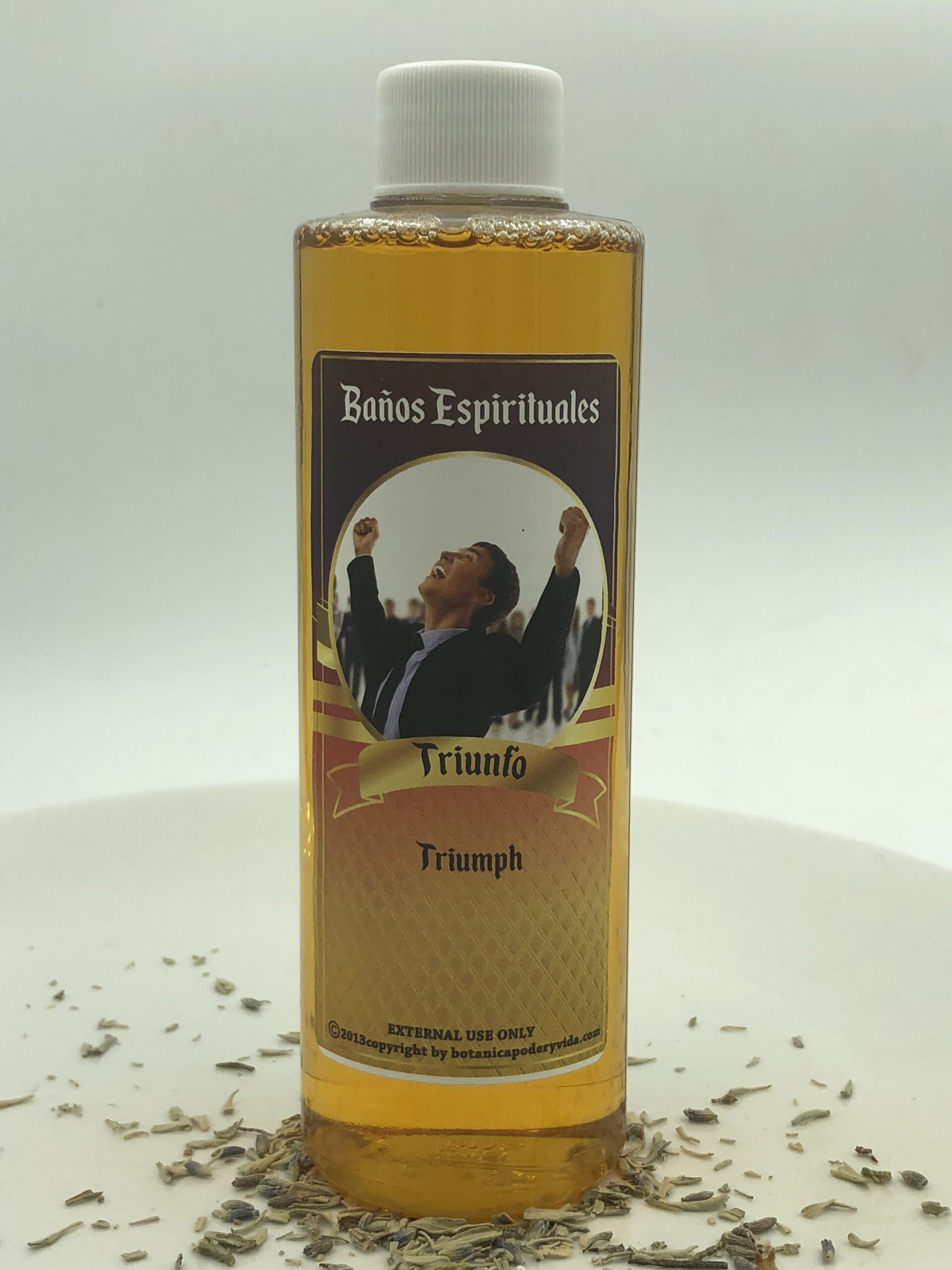 El baño espiritual Triunfo puede ser usado para atraer éxito en todo lo que te propongas. Mezclar el contenido con agua y ducharse. Solo para uso externo. El color puede ser diferente al de la imagen.