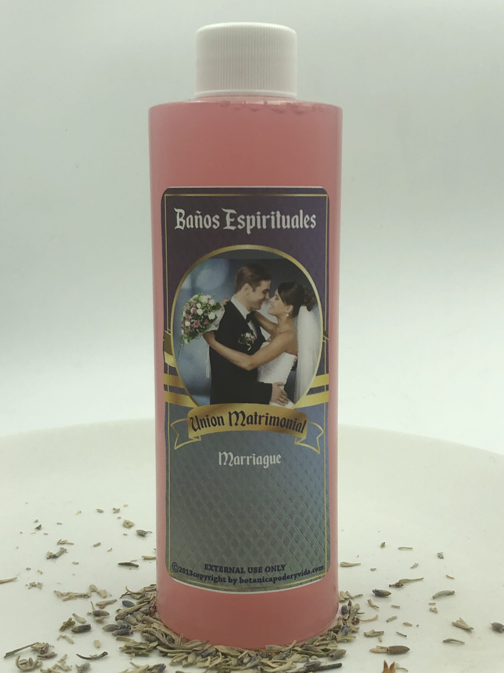 El baño espiritual Unión Matrimonial puede ser usado para unir en matrimonio a parejas y para ayudar a los matrimonios en crisis. Mezclar el contenido con agua y ducharse. Solo para uso externo. El color puede ser diferente al de la imagen.