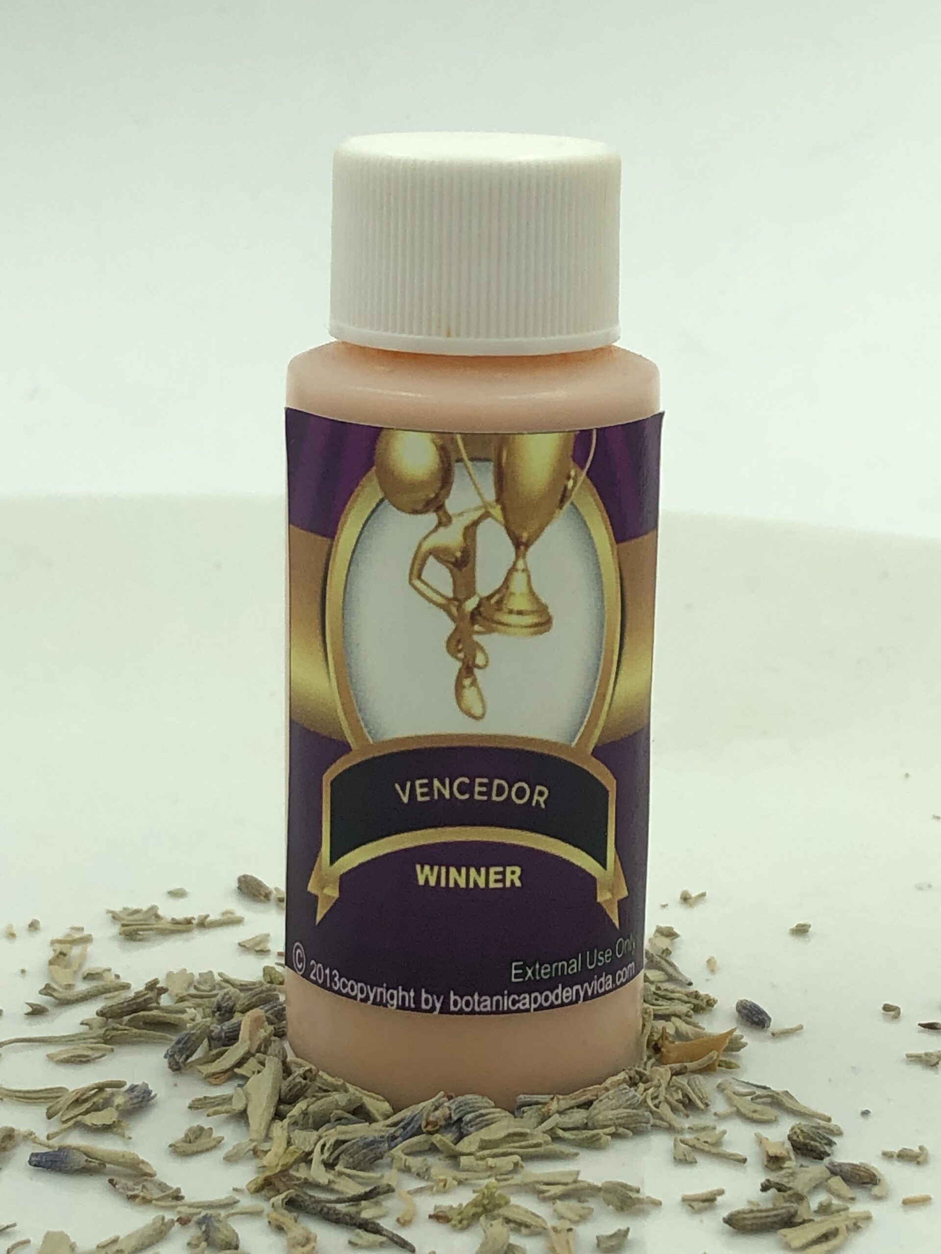 Vencedor or Winner Powder can be used to have success in life and everything you do. Apply it on yourself or sprinkle it on places or things. It can also be used to annoint candles. For external use only. The color may be different from the image.